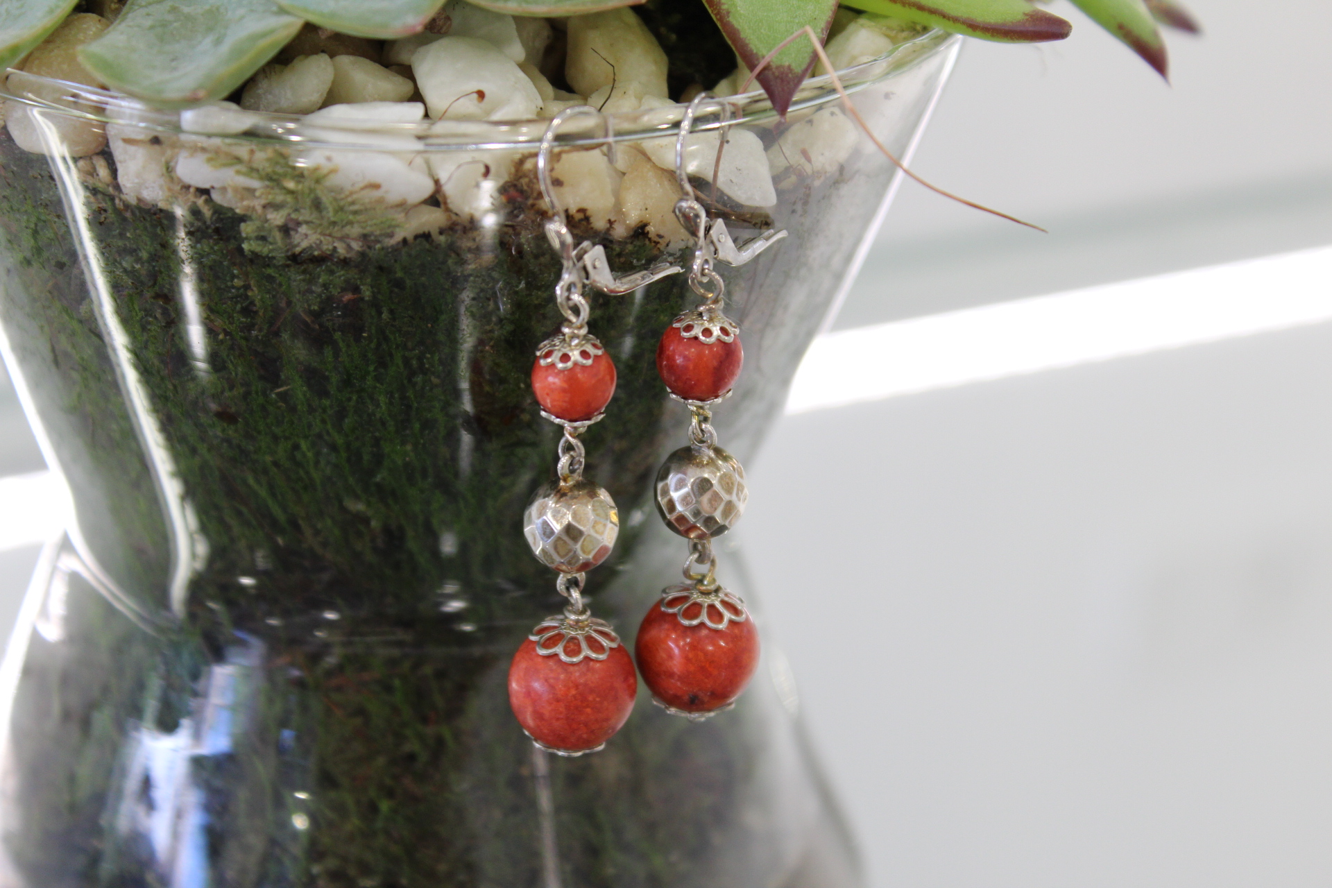 Srebrne naušnice sa koraljima.