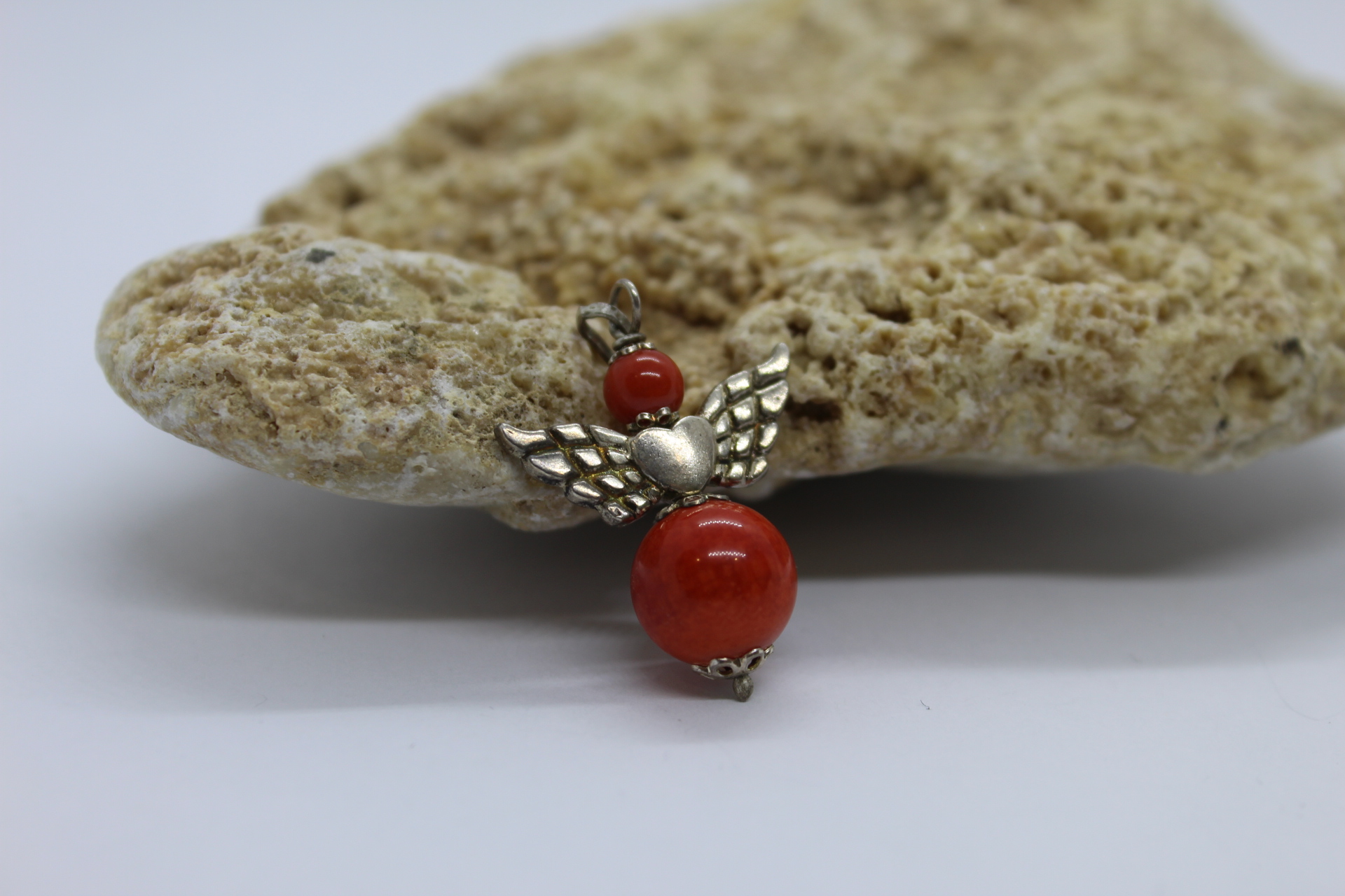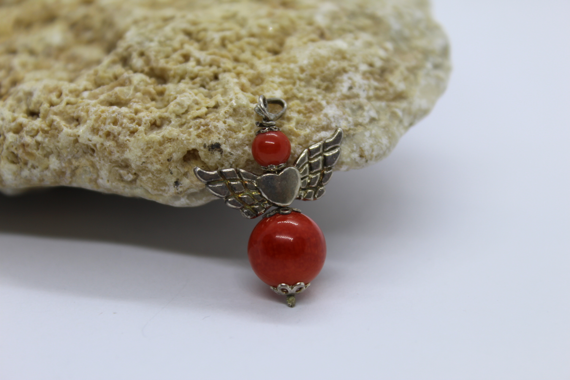 Srebrni privjesak sa koraljima.