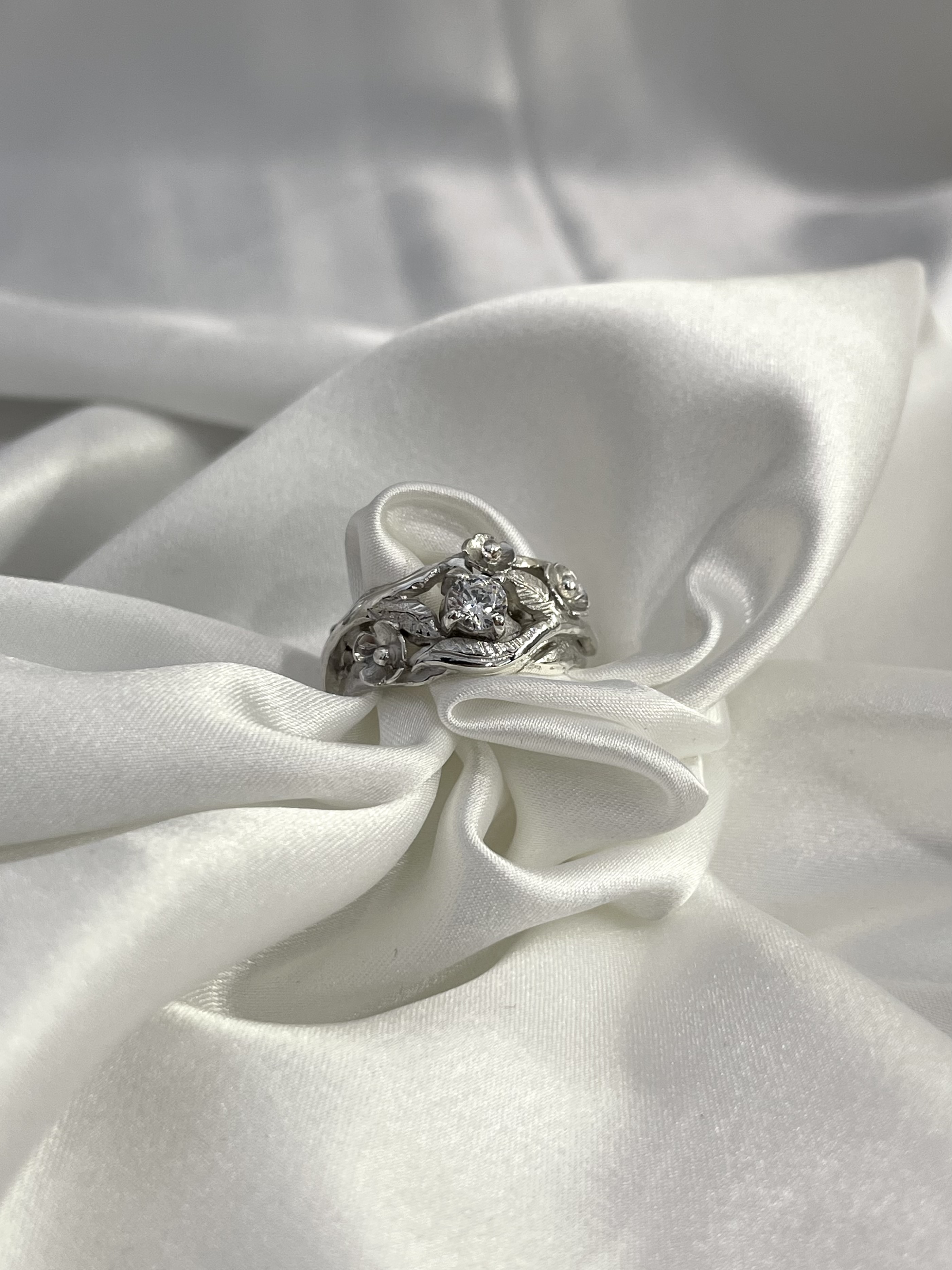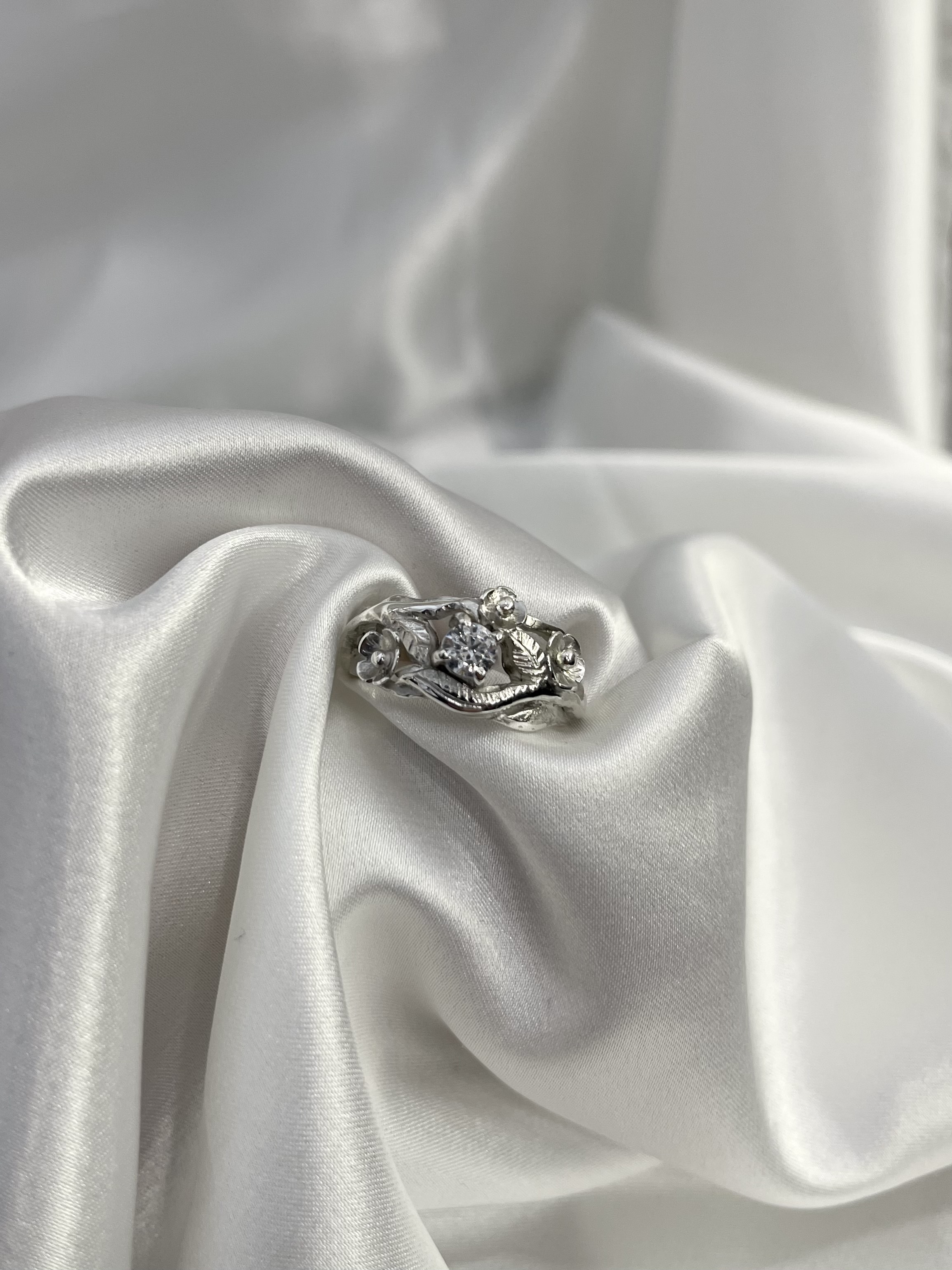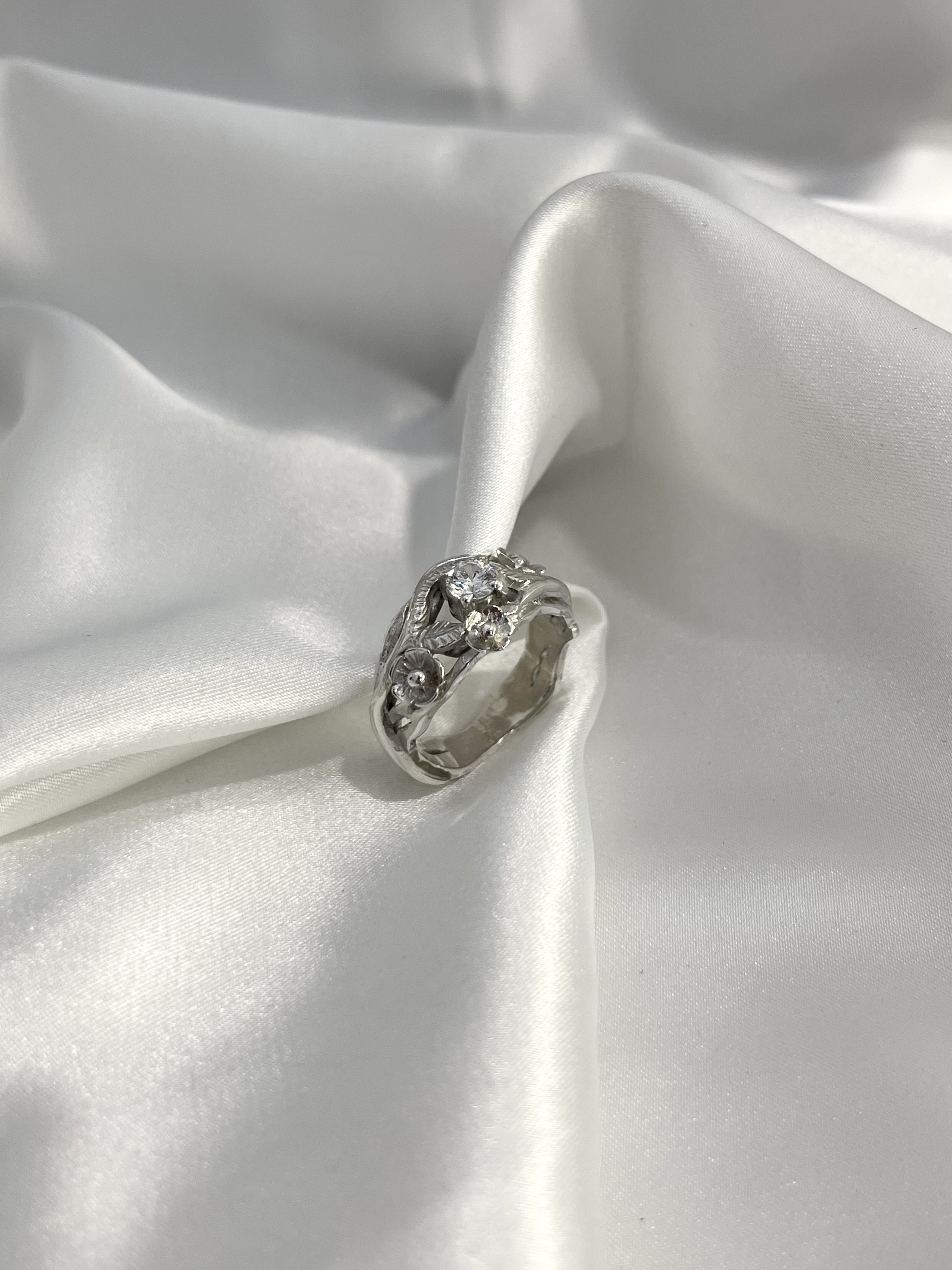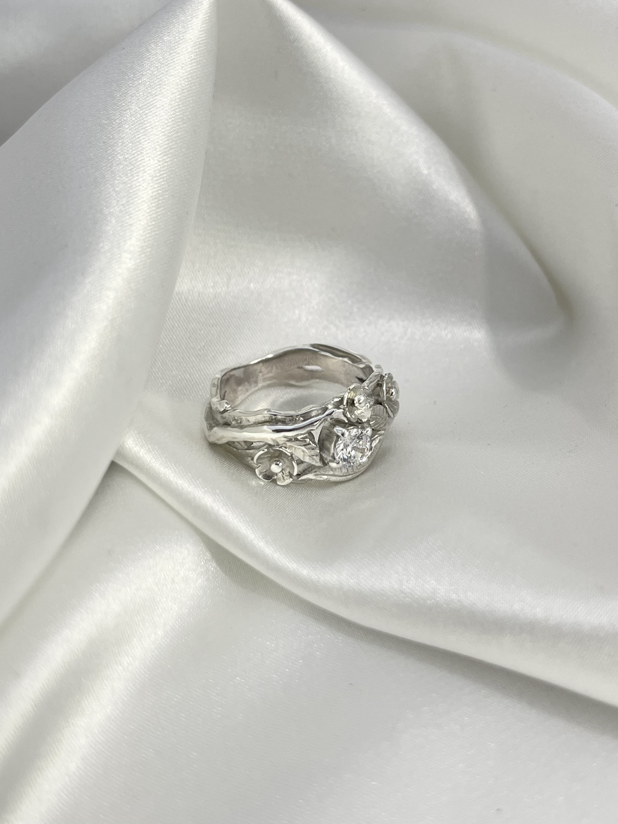 Srebrni prsten sa cirkonom i cvjetićima