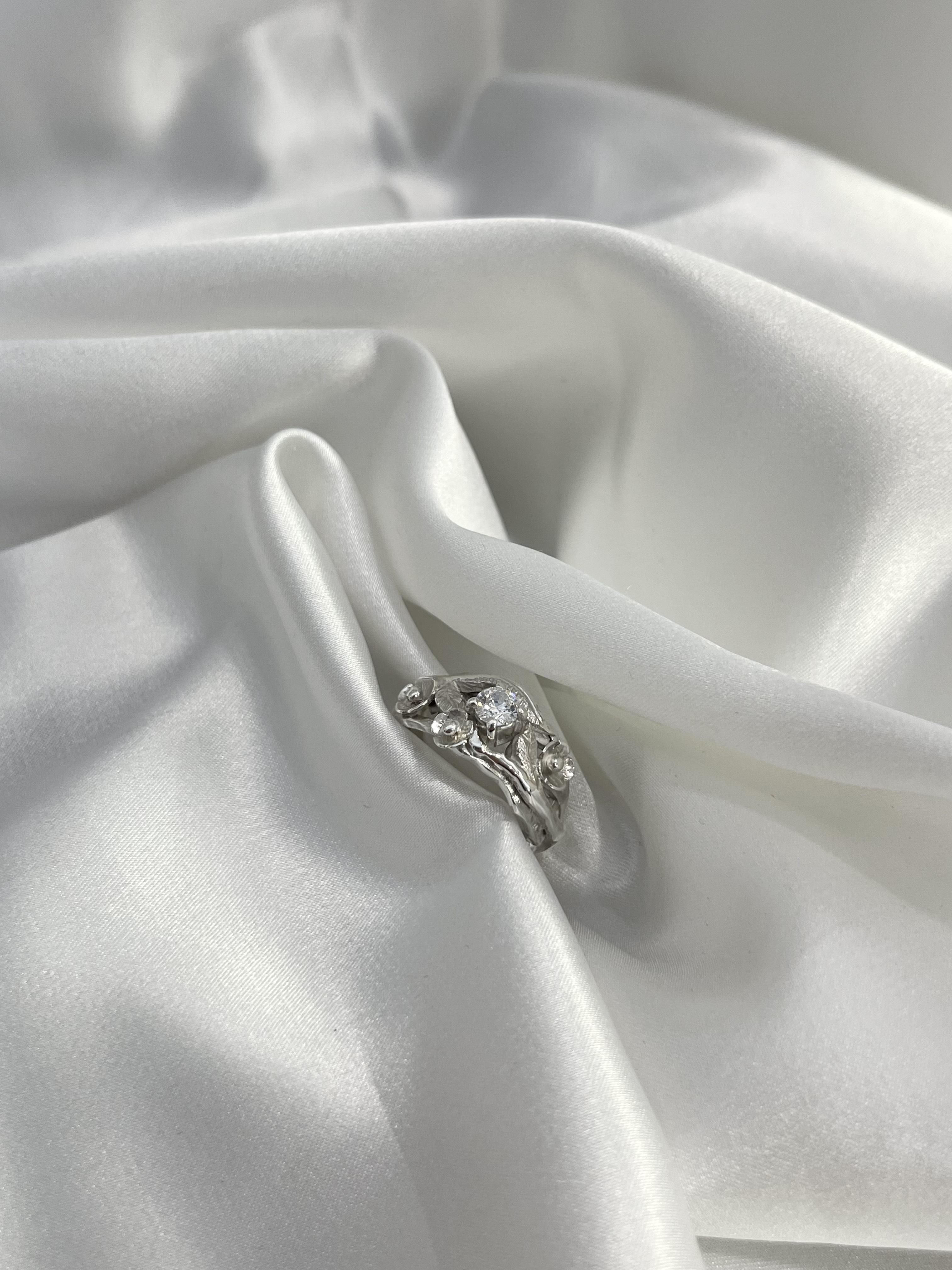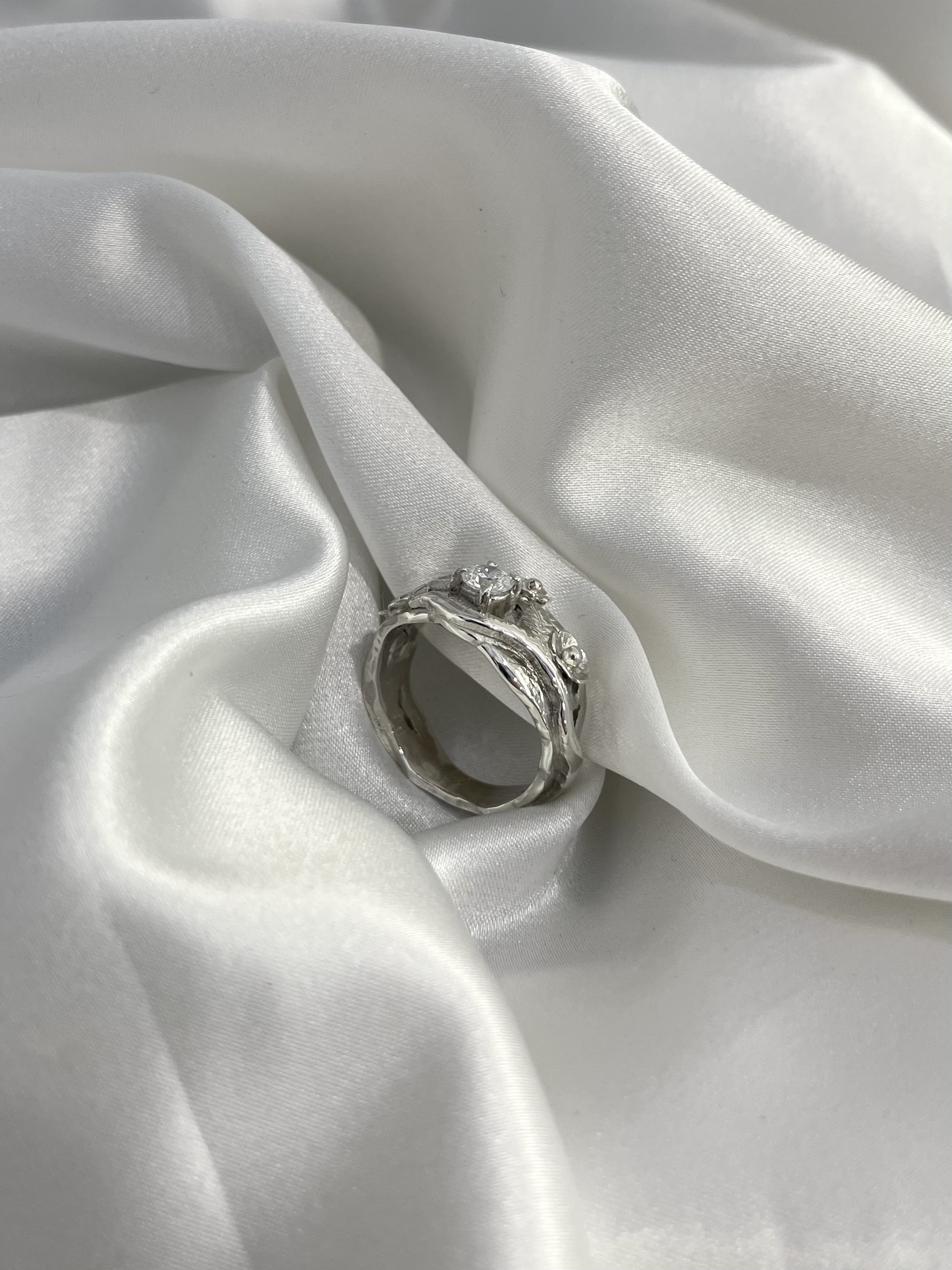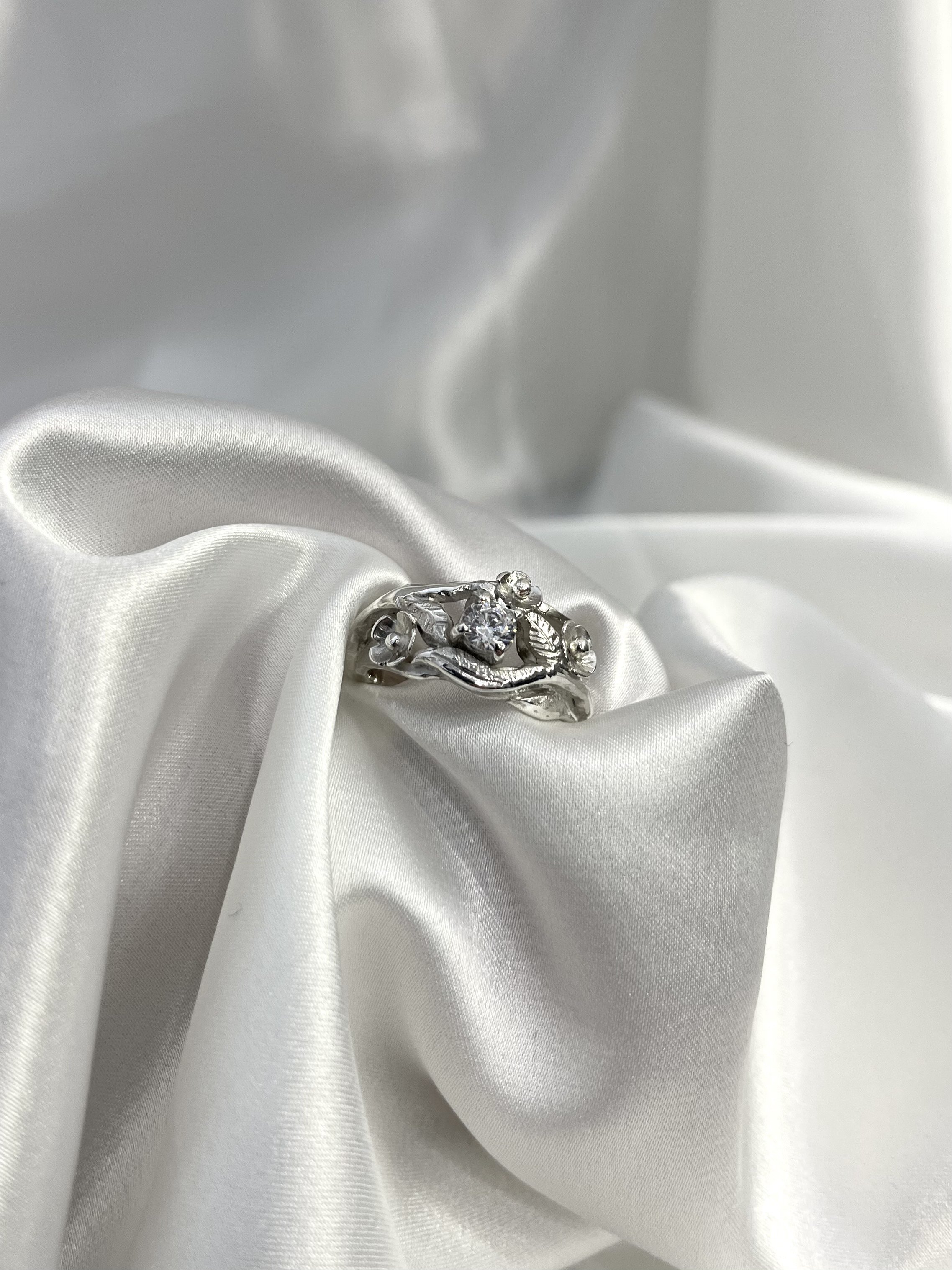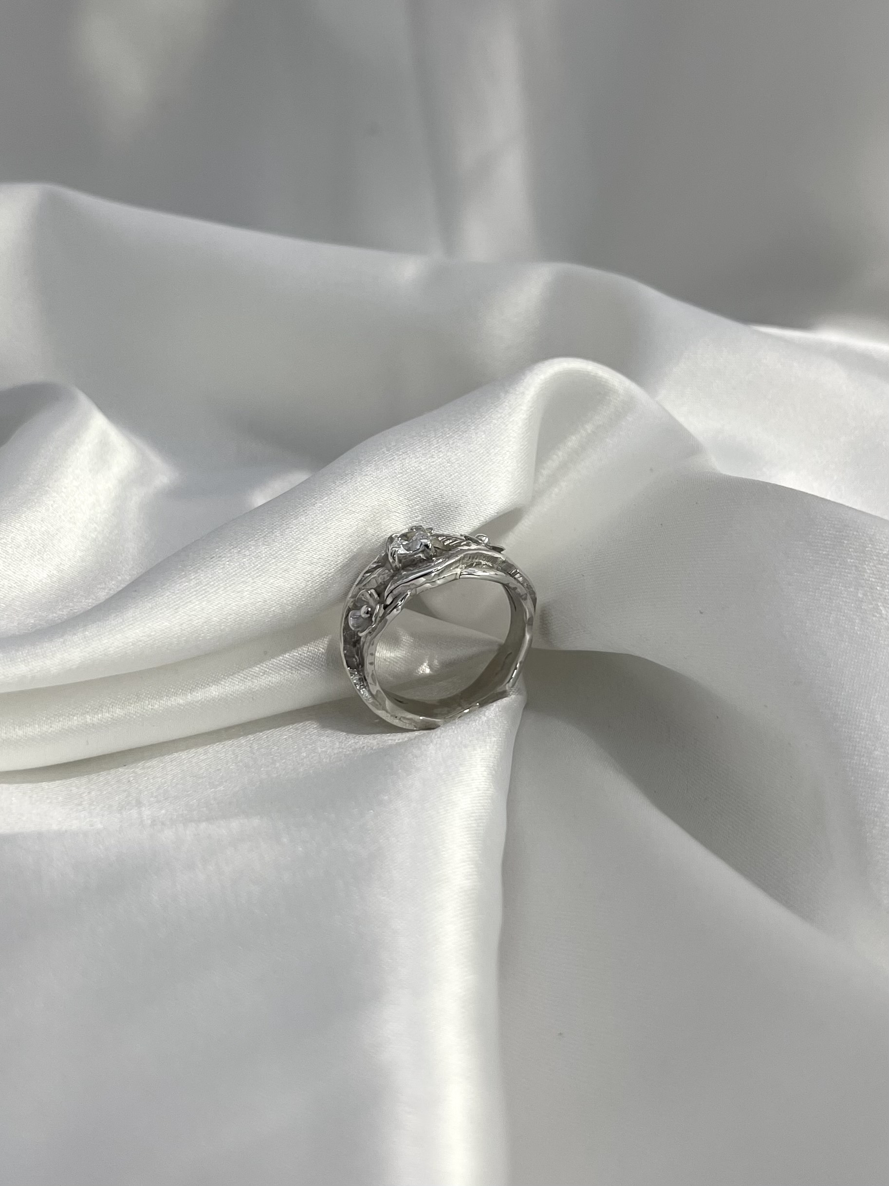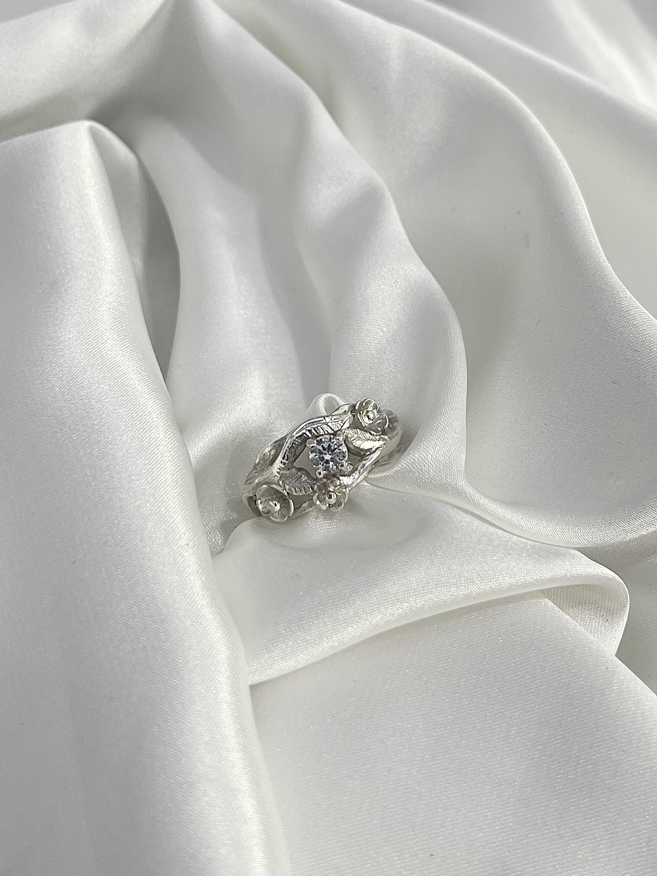 Srebrni prsten sa cirkonom i cvjetićima
