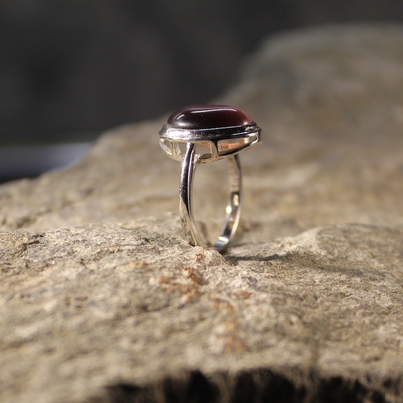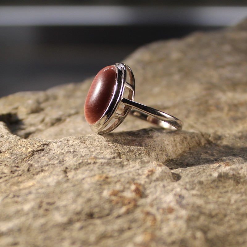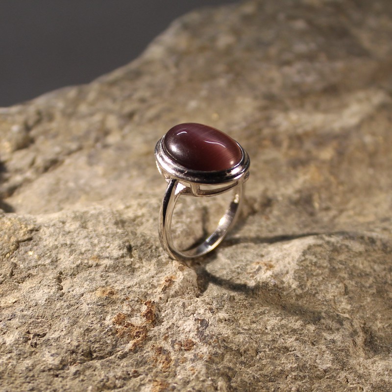 Srebrni prsten s kamenom mačje oko.